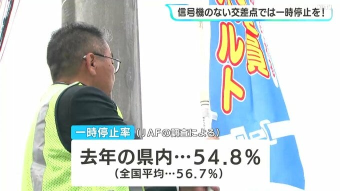JAFの調査によりますと、2025年の県内の一時停止率は54.8パーセントと、統計を取り始めた2018年以来最も高くなりましたが、全国平均には届いていません。