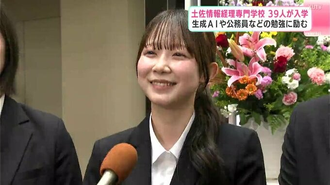 「地域社会に貢献できるような公務員に」土佐情報経理専門学校 39人が入学 生成AIや公務員などの勉強に励む 2026年4月10日(金) 18:26 国内 暮らし・マネー 高知市の「Tiac土佐情報経理専門学校」で入学式が行われ、3つの学科に39人が入学しました。▼新入生代表 田村碧衣さん「多くの壁にぶつかるであろうと、不安も感じています。だからこそお互いに知恵を出し、助け合…