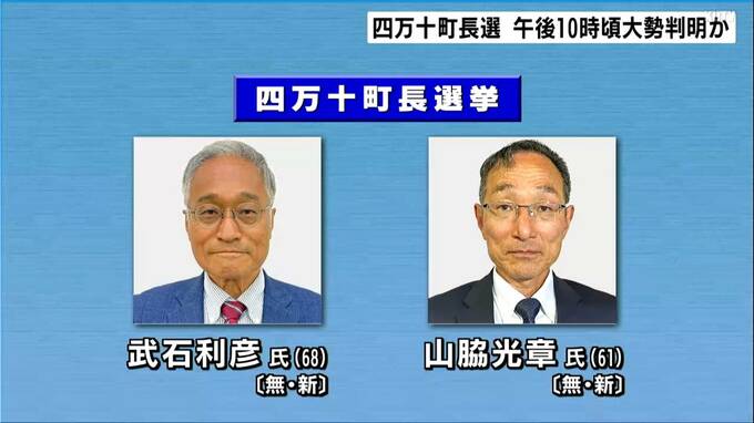 四万十町長選挙は届け出順にいずれも無所属で、元県議の武石利彦氏(68)と、元町教育長の山脇光章氏(61)の新人2人による一騎打ちの選挙戦でした。