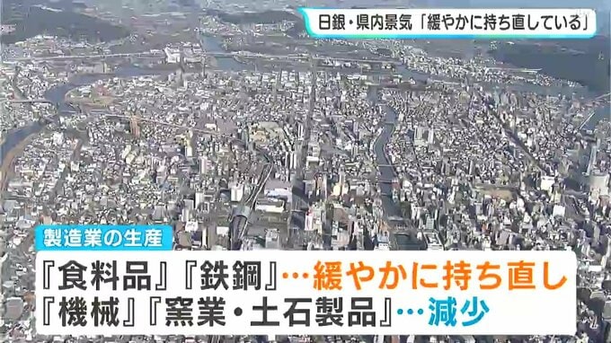 ただ、製造業の生産については「業種によるばらつきはあるものの、全体では弱めの動きとなっている」と判断を前回から引き下げていて、業種別では「食料品」「鉄鋼」などで緩やかに持ち直している一方、「機械」「窯業・土石製品」では減少しています。