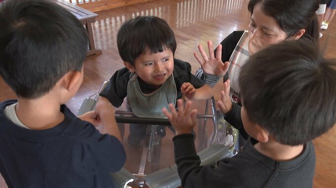 生後10か月から通う高知市立の一宮保育園では、障がいがある蒼くん1人が歩行器具を付けながら過ごす環境でしたが、専門の保育士のサポートを受けながら、たくさんの友達に囲まれて楽しい日々を過ごしてきました。