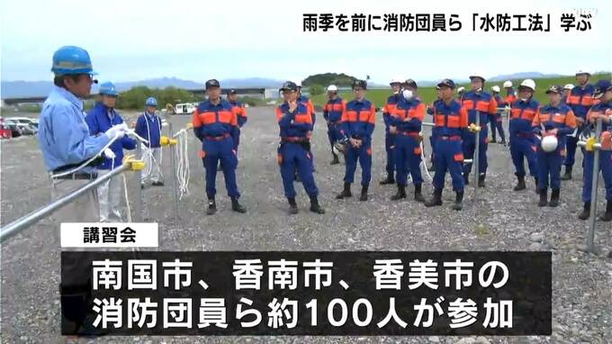 豪雨や台風などによる災害に備え、高知県香南市の物部川河川敷で、水防工法の講習会が開かれました。