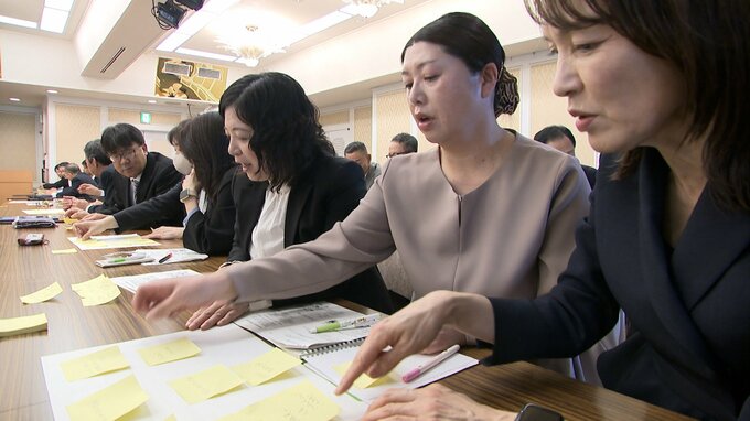 ワークショップでは「働き方改革を通じてどんな学校を作っていきたいか」など、校長らが校種の垣根を越え意見を交わしていました。