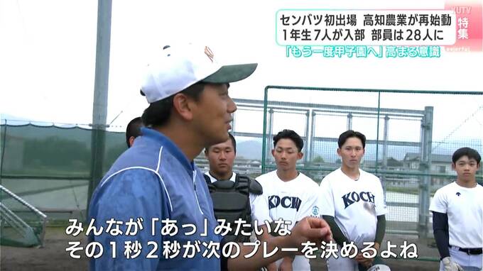3月、春のセンバツ高校野球に21世紀枠で甲子園初出場を果たした高知農業高校野球部に、この春、7人の1年生が入部しました。新たなメンバーを迎え、再び、夢の舞台へ。夏の甲子園に向け、次のステージはもう始まっています。