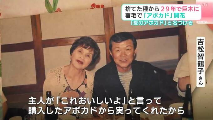 「『愛のアボカド』と名前を付けました。主人が『これ、美味しいよ』と言って購入したアボカドから実ってくれたから⋯。主人は亡くなってしまったから、この木を『2人の愛のアボカド』にしたんです」
