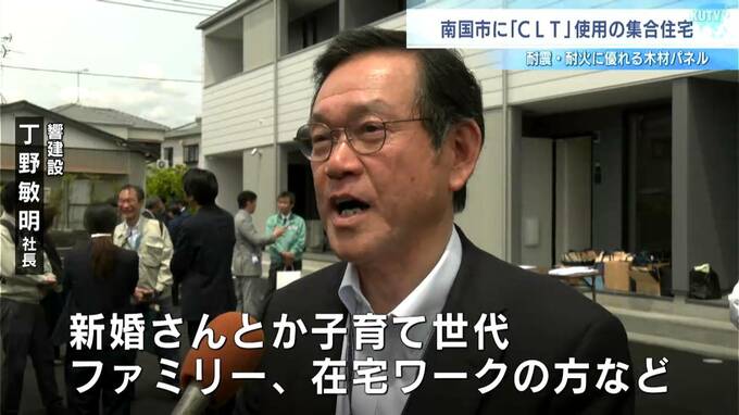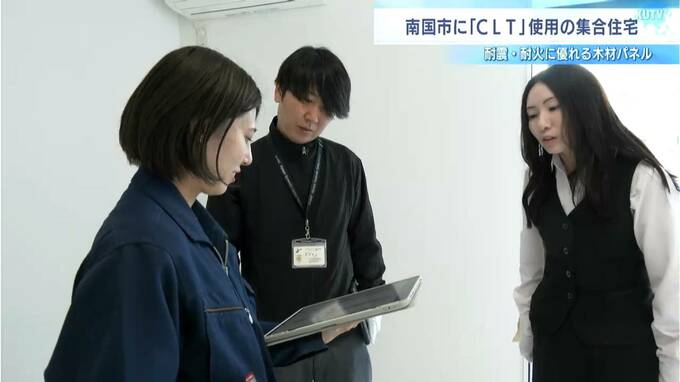 耐震性や耐火性などに優れた木材パネル「CLT」を使った集合住宅が南国市に完成し、入居希望者や関係者を対象とした見学会が25日行われました。