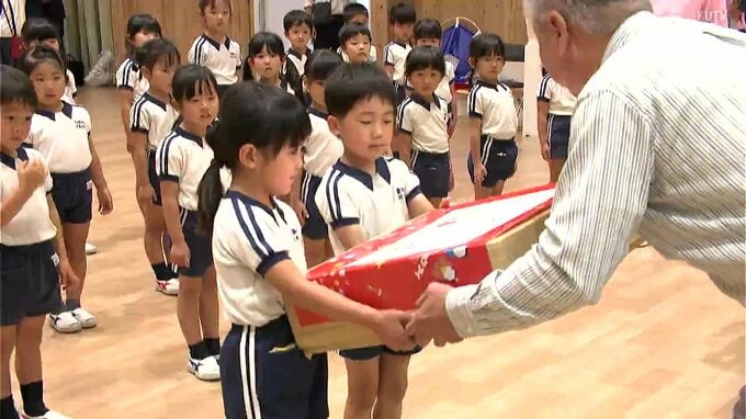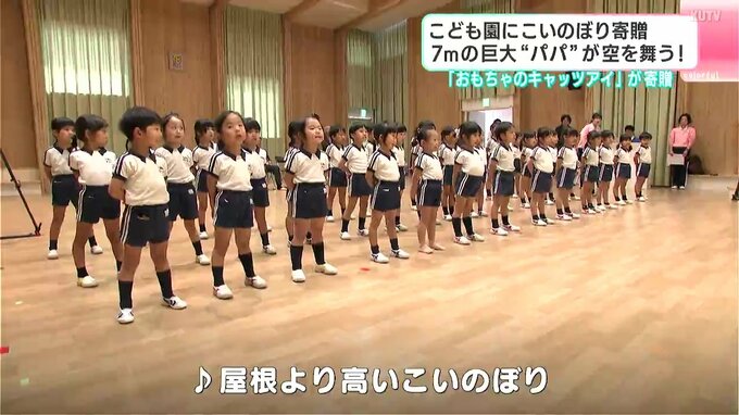こいのぼりを受け取った年長組の園児44人はお礼に歌を披露!