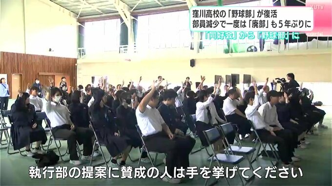 部員数の減少で一度は「廃部」となった窪川高校の野球部が、28日の生徒総会を経て、「部」として復活することになりました。2021年以来、5年ぶりの復活です。