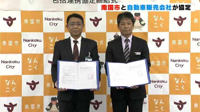 安心して住み続けられる地域を目指して 高知県南国市と自動車販売会社が協定 2023年2月14日(火) 11:56 国内 誰もが安心して住み続けられる地域を目指して、高知県南国市と自動車販売会社が協定を結びました。南国市と包括連携協定を結んだのは、高知ダイハツ販売です。高知ダイハツ販売は地域社会との共生を目指して、国分…