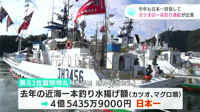 今年も、大海原でカツオの一本釣りが始まります。去年、近海一本釣りの水揚げ額が日本一となった漁船が16日、高知県黒潮町から出港しました。