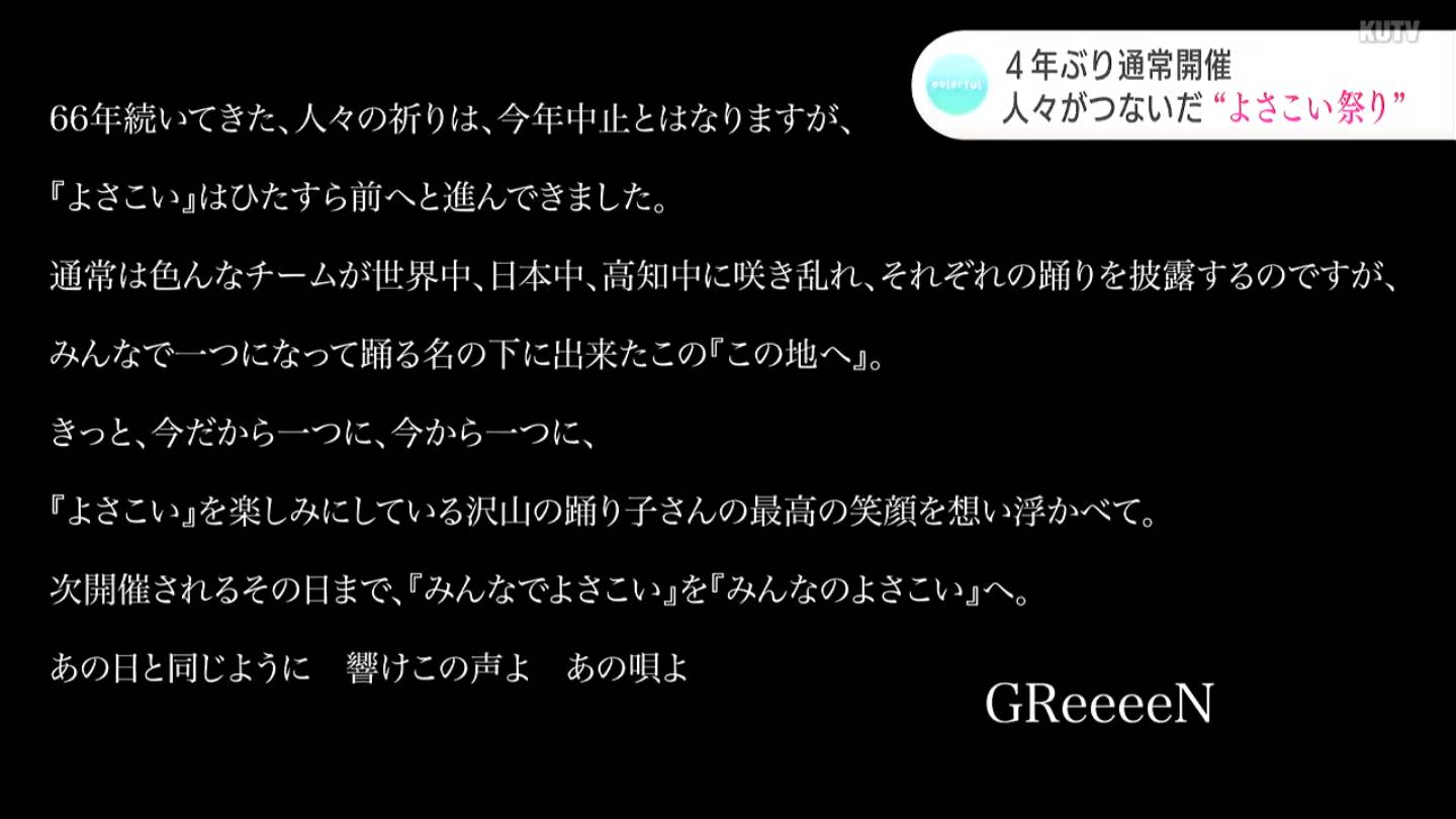 3年間、どんな形でも踊り続けた人、諦めた人、次の年を見据えた人…4年ぶり、さまざまな思いをのせた高知の夏が、ようやく戻ってきます。