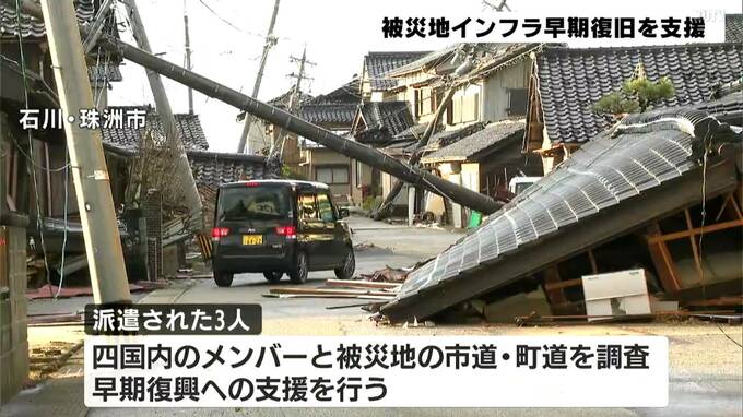 3人は、四国の他県のメンバーとともに、被災した市や町が管理する道路の被害状況の調査などを通じて、早期復旧の支援を行います。