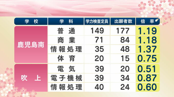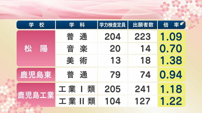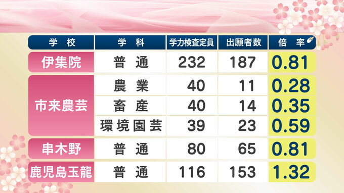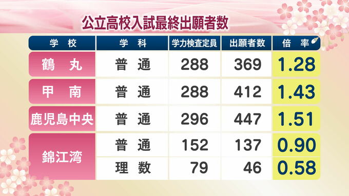 鹿児島県公立高校入試【全校の最終出願倍率】鶴丸1.28倍 甲南1.43倍 鹿児島中央1.51倍…志願倍率一覧