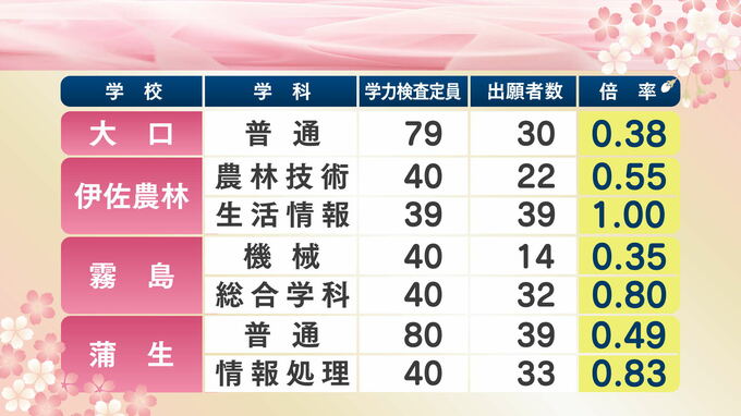 鹿児島県公立高校入試【全校の最終出願倍率】鶴丸1.28倍 甲南1.43倍 鹿児島中央1.51倍…志願倍率一覧