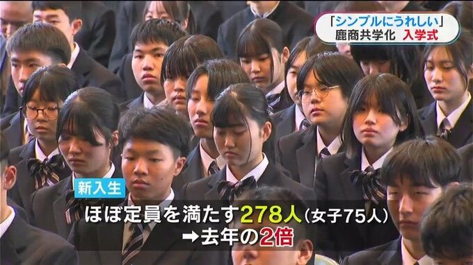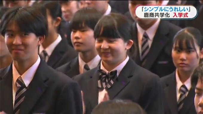 鹿児島市の鹿児島商業高校で9日に入学式があり、新たに男女共学の学校としてスタートしました。初めて女子生徒を迎えた先輩たちからは、歓迎の声が上がりました。