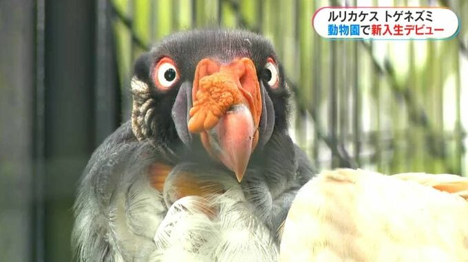赤や黄色の派手な模様が特徴のトモイロコンドルです。国内に1羽しかいない貴重な鳥です。