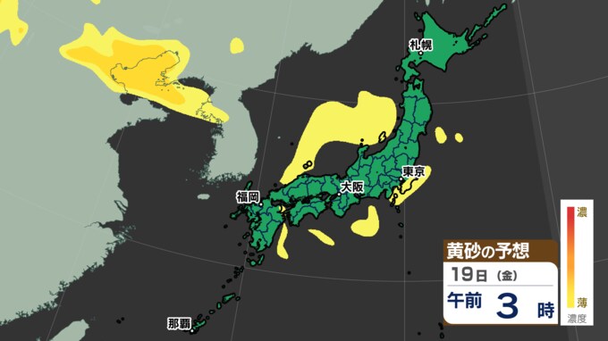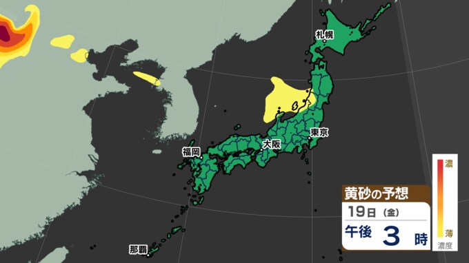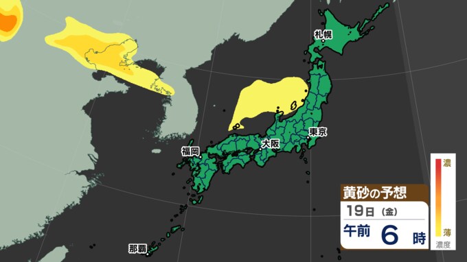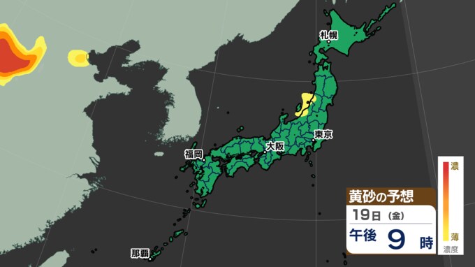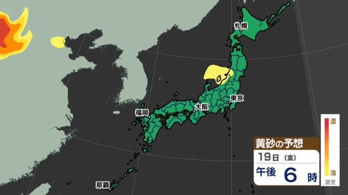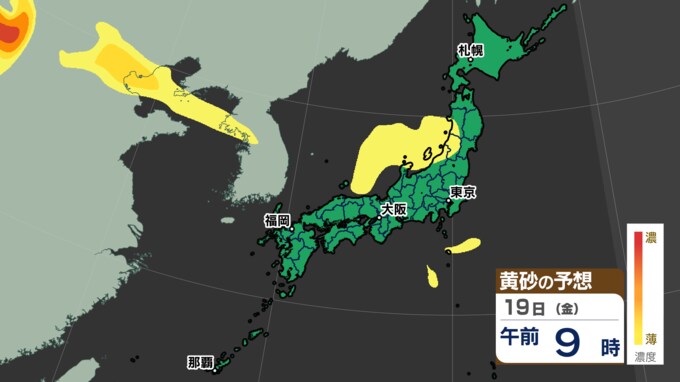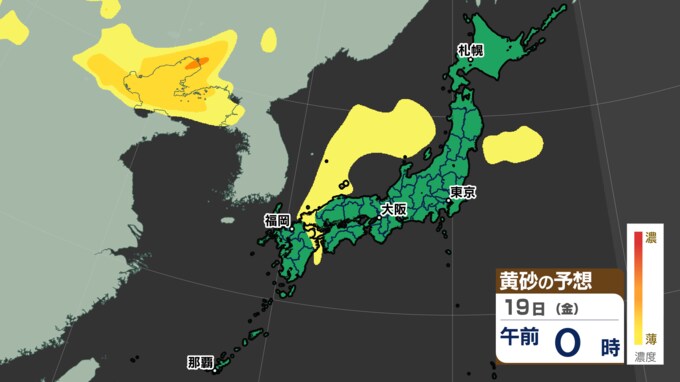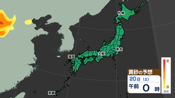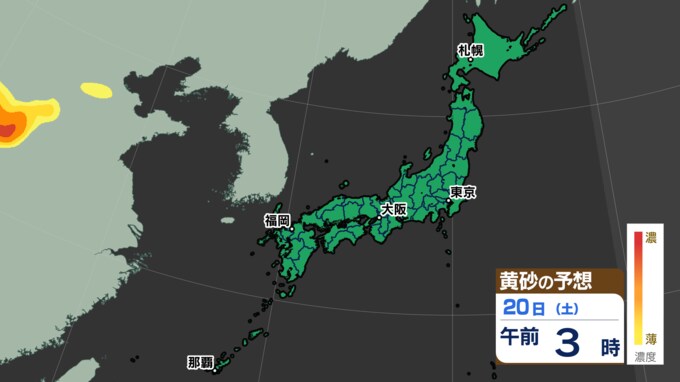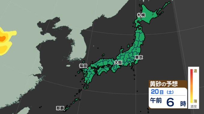 【黄砂情報】全国的に黄砂 大阪・愛知・広島・長崎などで観測 20日(土)までの黄砂シミュレーション