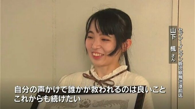 感謝状を贈られたのは、セブン-イレブン鹿児島鴨池港前店の店員で、鹿児島国際大学4年生山下楓さん(21)です。