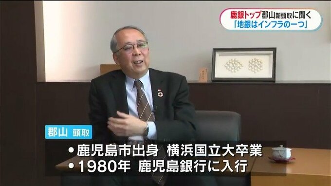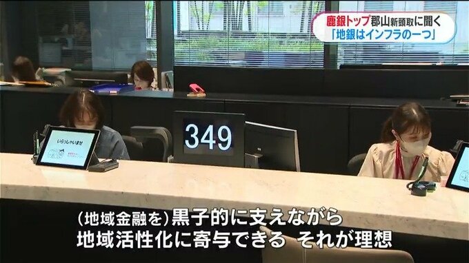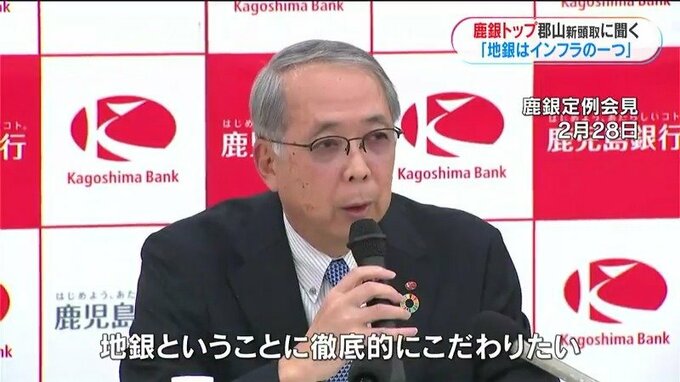 (鹿児島銀行 郡山明久頭取)「金融が電気・ガス・水道と同じようにインフラの1つだと認識している。地域のインフラで金融基盤を支えなければいけない、という使命がある。地域金融を黒子的に支えながら、地域活性化に寄与できる、それが理想」
