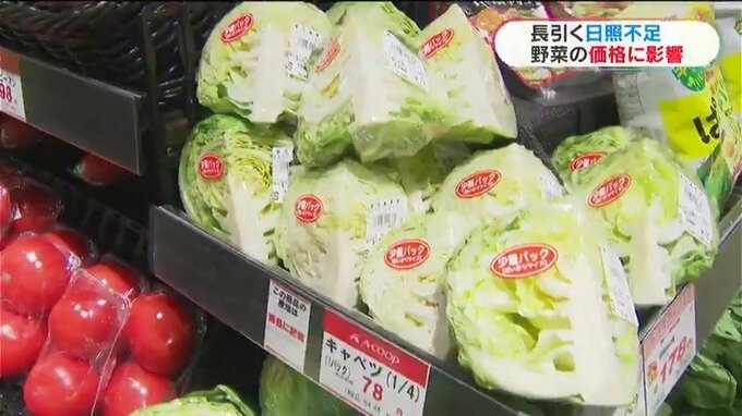 先月から続く日照不足で、野菜の生育が進まないことなどが、値上がりの原因だといいます。