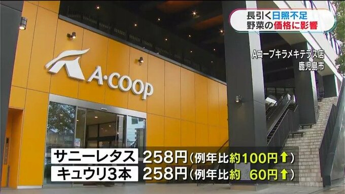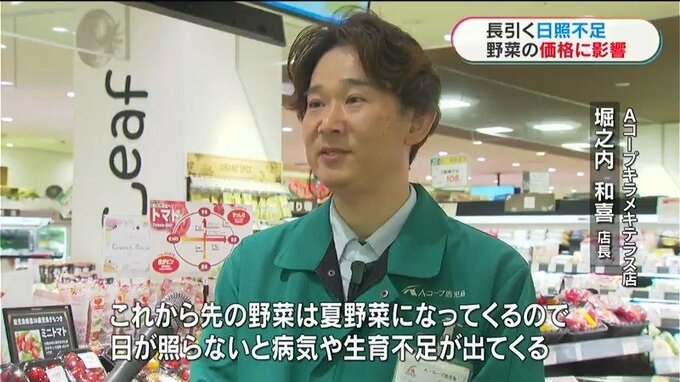 (Aコープ・キラメキテラス店 堀之内和喜店長)「これから先の野菜は夏野菜になってくるので、日が照らないと病気や生育不足が出てくる。量が増えてくる見込みはいまのところは不透明」