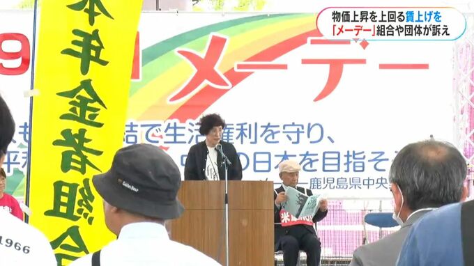 「物価上昇を上回る賃上げを」5月1日はメーデー 鹿児島市で180人が集会 2024年5月1日(水) 19:25 国内 きょう、5月1日は労働者の権利を訴える「メーデー」です。県労働組合総連合=県労連などが鹿児島市で集会を開き、物価上昇を上回る賃上げを訴えました。(県労連 福丸裕子議長)「賃金底上げ、社会保障拡充など最…