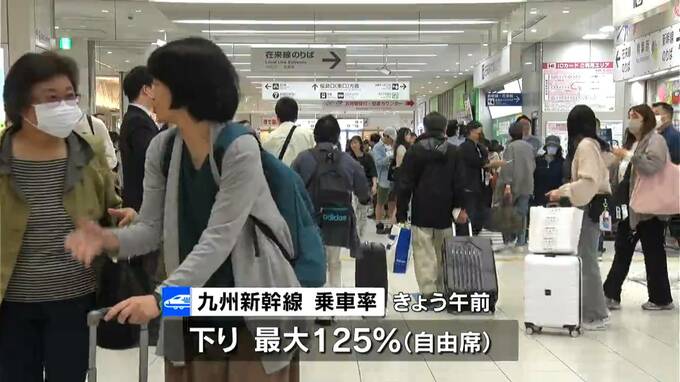 JR九州によりますと、九州新幹線・下り自由席の乗車率は、最大125%となっています。