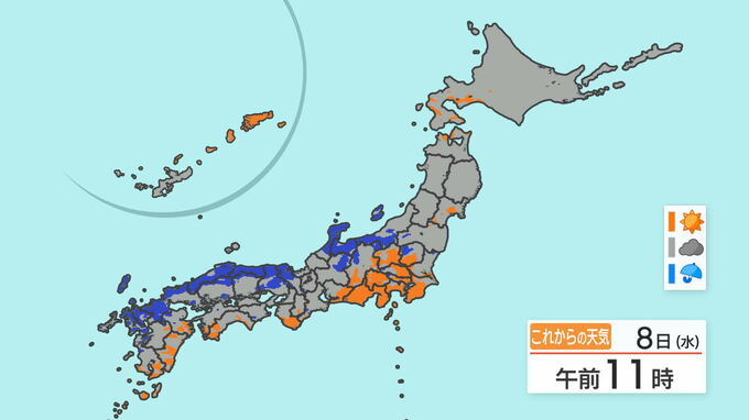 寒冷前線のうしろには、マイナス18℃以下の寒気が控えています。この寒気が南下し8日(水)には日本列島を覆う見込みです。上空5700mでは、7日(火)朝と比較して10℃~15℃ぐらい気温が下がるでしょう。