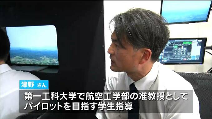 霧島市に住む津野拓士さん(49)です。第一工科大学で、航空工学部の准教授としてパイロットを目指す学生の指導をしています。