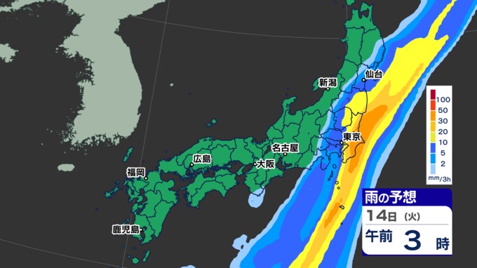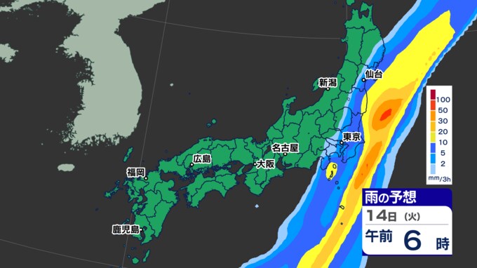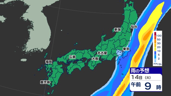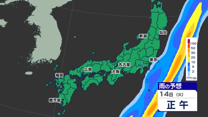 【全国大雨 12日(日)~14(火)】風強く荒れた天気 警報級のおそれ 雨シミュレーション12日(日)~14日(火)