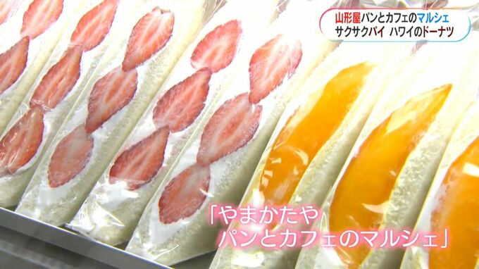 午前10時、オープンから6階の催事場には続々と人の姿が。15日から始まった「やまかたやパンとカフェのマルシェ」。県内外から、話題のパンやそれを彩るドリンクなど50社の商品が並びます。