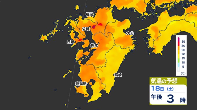 【週末30℃以上の真夏日のところも?】福岡・佐賀・大分・長崎・熊本・宮崎・鹿児島・沖縄の天気 雨と雲と風のシミュレーション18日~19日 2024年5月17日(金) 19:08 国内 天気 18日(土)の予想天気と気温分布図 沖縄を除いてよく晴れて気温上昇。 19日(日)の予想天気と気温分布図 土曜日に比べ、日曜日のほうが暑い。 雨の宮崎県は気温が上がらない。 「雨と雲と風のシミュレーション」18日(土)午前0時~20日(月)午前0時までを画像で掲載