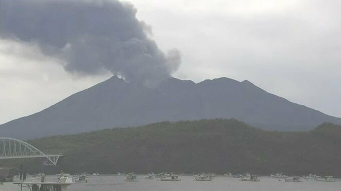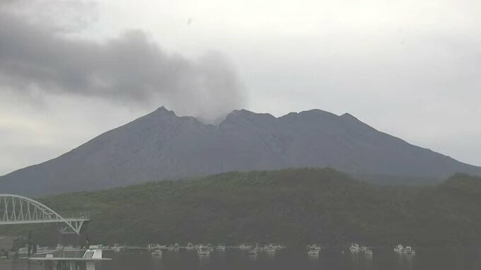 桜島の南岳山頂火口で20日午後2時42分に噴火が発生し、中量の噴煙が火口から1200メートルの高さまで上がりました。噴煙は南に流れています。
