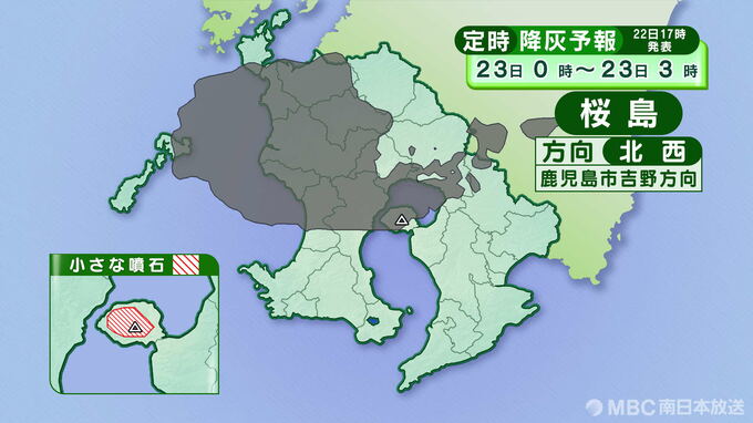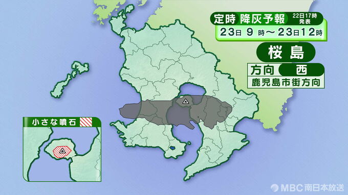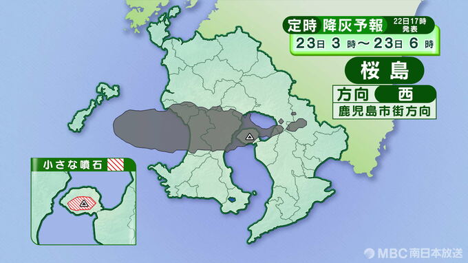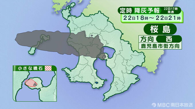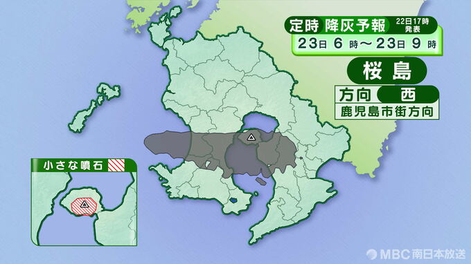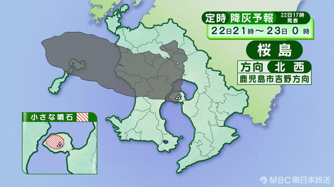 桜島の降灰予報(定時)22日午後6時~23日正午は画像で掲載