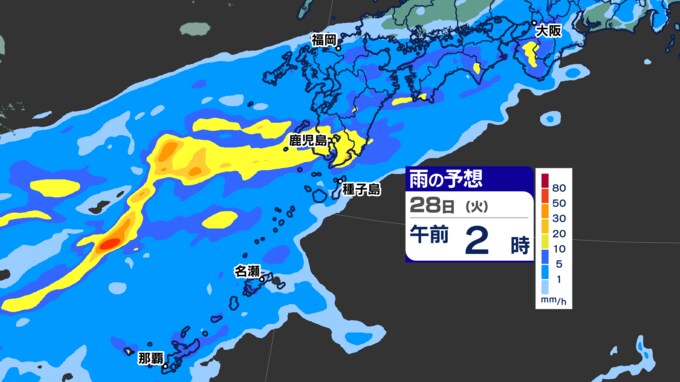 【大雨情報】線状降水帯…鹿児島・宮崎で発生おそれ【九州の雨シミュレーション今夜~あす】大雨のエリアと時間を確認