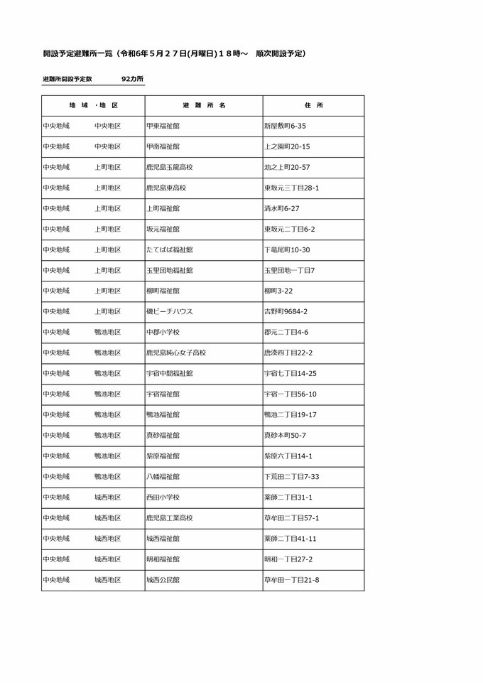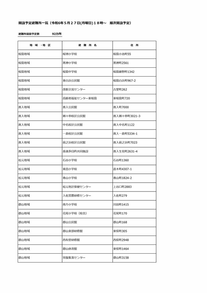 また、27日午後11時現在、各市町村は鹿児島市で92か所など、県内あわせて167か所の避難所を開設しています。