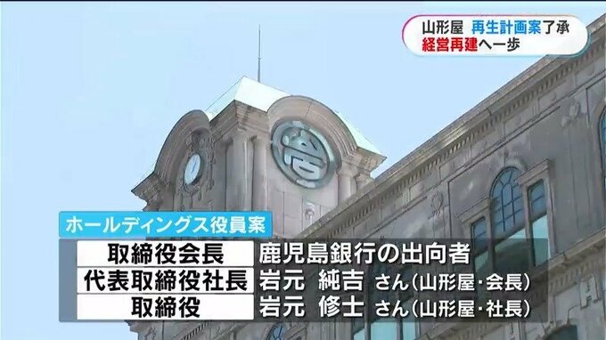 関係者によりますと、ホールディングス体制の役員人事案は、取締役5人のうち鹿児島銀行から2人、東京のファンド運営会社から1人を派遣するもので、会長には鹿児島銀行からの出向者、代表取締役社長には現在の山形屋会長・岩元純吉さん、取締役には現在の山形屋社長・岩元修士さんの名前があがっていました。