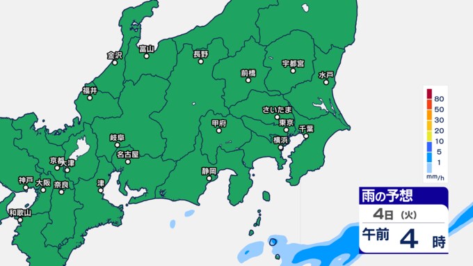 3日から4日にかけて予想される1時間雨量
