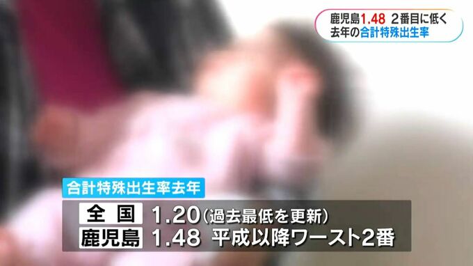 鹿児島県の合計特殊出生率 平成以降2番目に低い1.48 2024年6月5日(水) 19:06 国内 1人の女性が一生のうちに生む子どもの数を示す、合計特殊出生率が5日発表されました。去年、全国で1.20と過去最低を更新し、鹿児島県でも1.48で平成以降2番目に低い数字となりました。厚生労働省が5日発表した人口…