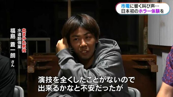 (血まみれ男役・水道設備業 福島蒼一朗さん)「演技を全くしたことがないので、出来るかなと不安だったが、ゾンビ映画をみて動きを取り入れてみたりした」
