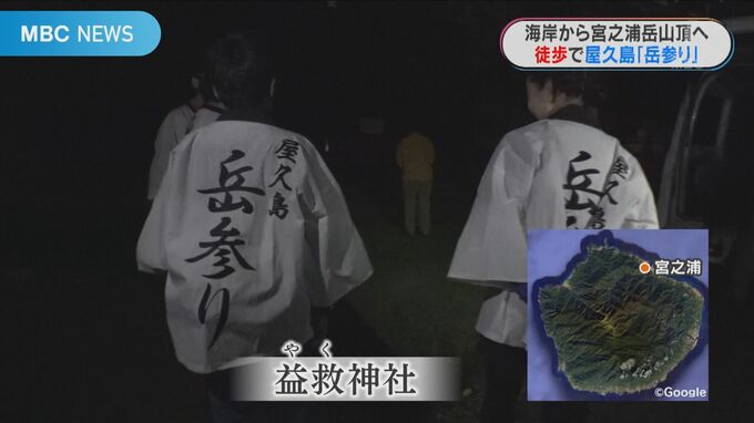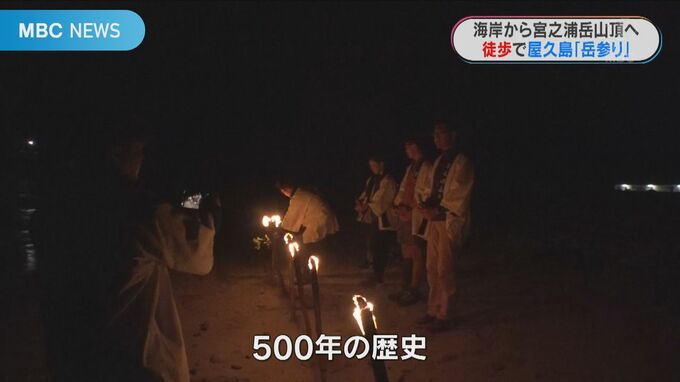 午前3時半。宮之浦集落にある益救神社に、白装束に竹笠を被った住民らの姿がありました。参拝のあと松明に火を灯し、近くの海岸へ。体を清め、竹筒に浜砂を詰め込みます。山の神に捧げるためです。