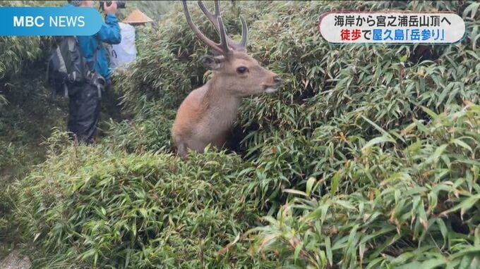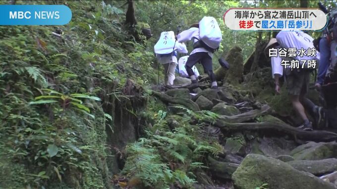 午前7時。観光地として知られる白谷雲水峡から本格的な山道となりました。集落を代表して7人が登ります。屋久島の象徴でもある縄文杉に立ち寄りました。