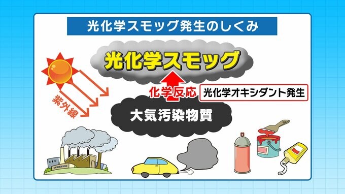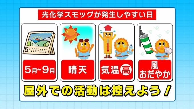局地的に光化学スモッグが非常に発生しやすい気象状態になるとして注意を呼びかけました。