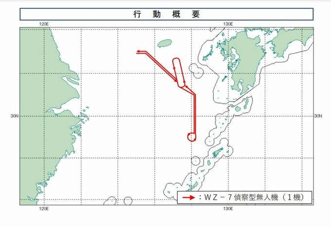 防衛省によりますと、25日午後、中国軍の偵察型無人機「WZ-7」1機が、大陸方面から飛来しました。