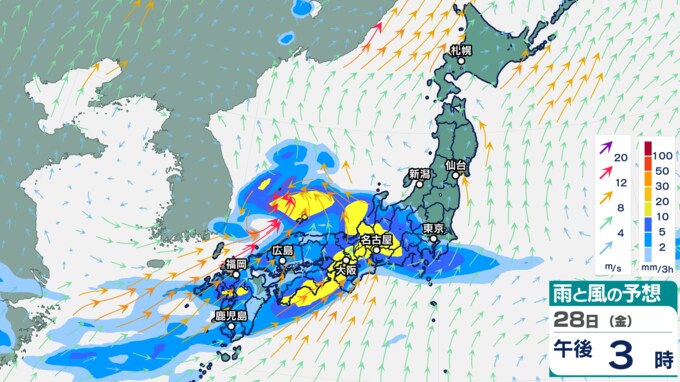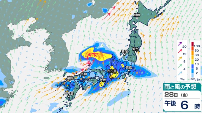 29日(土)雨シミュレーション 東海や東北に活発な雨雲