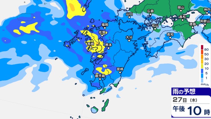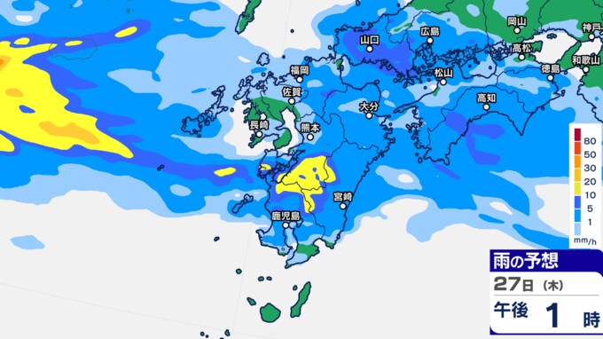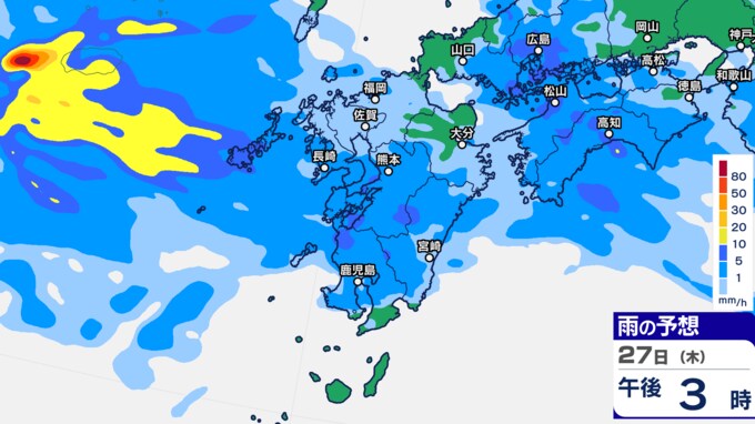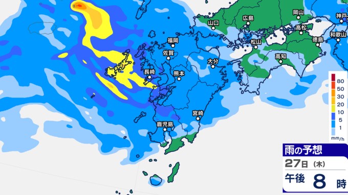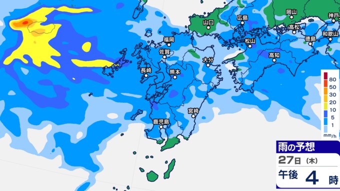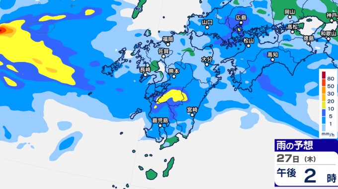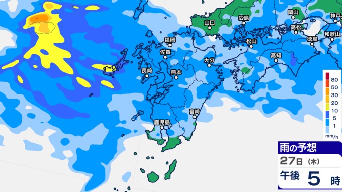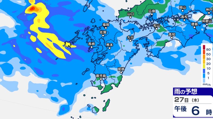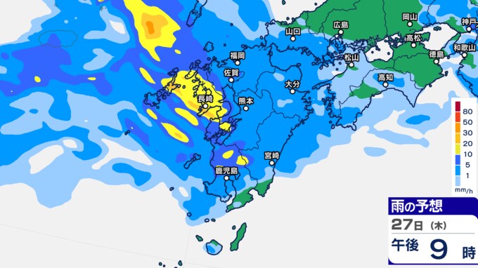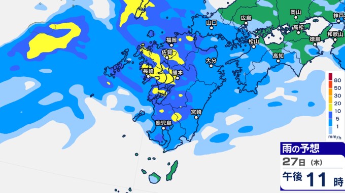九州あすから金曜「警報級の大雨」 雨シミュレーション27日(木)~28日(金)福岡・長崎・佐賀・大分・熊本・鹿児島・宮崎の予想雨量【大雨情報】
