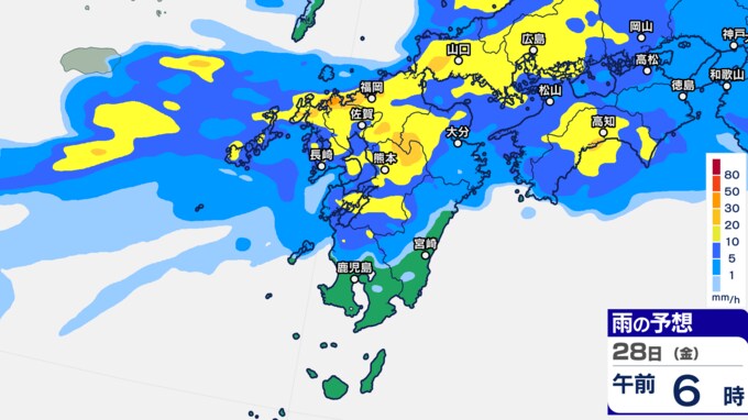 九州あすから金曜「警報級の大雨」 雨シミュレーション27日(木)~28日(金)福岡・長崎・佐賀・大分・熊本・鹿児島・宮崎の予想雨量【大雨情報】