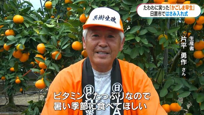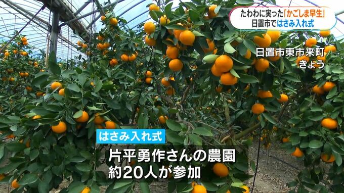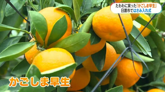 通常より早い時期に収穫されるハウスみかん「かごしま早生」のはさみ入れ式が、日置市でありました。