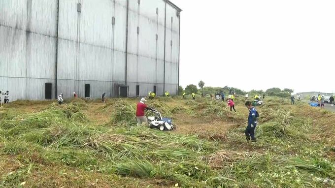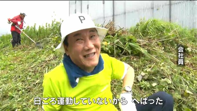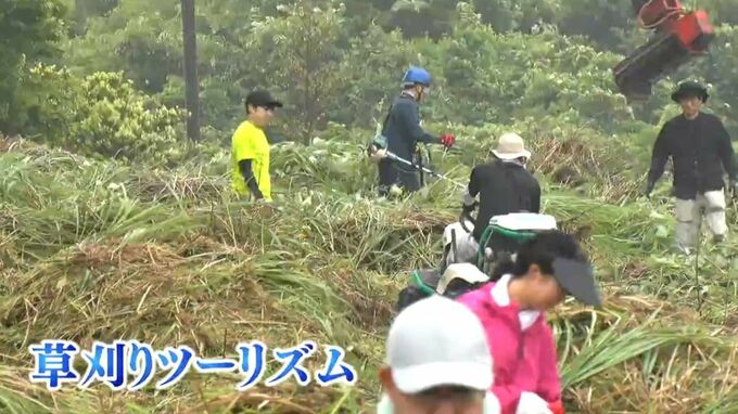県内各地で草刈りをしながら観光や地域住民との交流を行っているボランティア団体「草刈りツーリズム」からもおよそ20人が参加。作業に慣れない初心者も楽しく汗を流します。