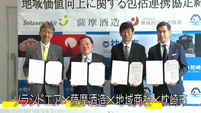 地元枕崎にある薩摩酒造と地域振興を掲げている航空会社のソラシドエア、枕崎市でゲストハウスなどを運営する商社、そして市です。
